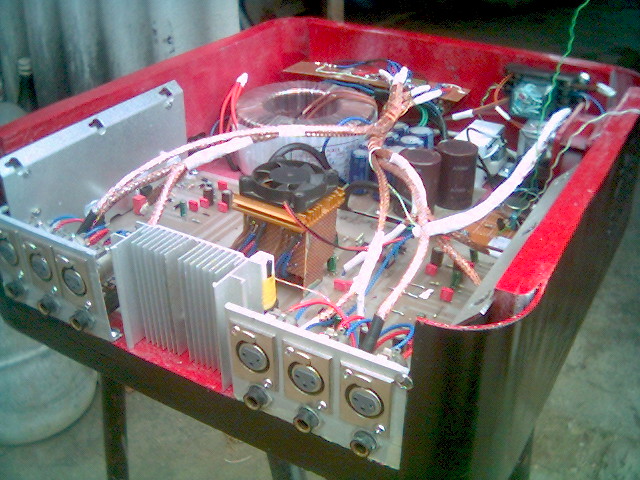功放中的设计布线、电容的质量(特别是耦合电容)、电源的储备功率、以及电路的选择决定了它的音质,此功放电路板是DIY的(药水泡),电容全是进口的ELNA以及WIMA,虽然的贵,但绝对有价值,开关是自己设计的触摸电路(回南天烧了一个继电器,潮湿天就要用风筒吹干才能用,失败),电源当时没钱买了一个便宜货,输出功率明显不足,输出功率不足200W竟然些500W,这就是贪小便宜的后果,失败中的失败