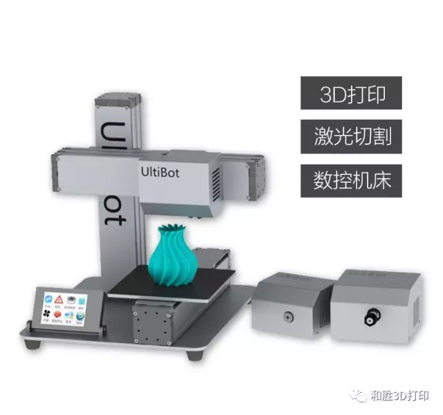 UltiBot是一款模块化的产品,可以通过很方便的拆装,变成3D打印机、数控机床雕刻机和激光切割机,将都需要三轴的三种产品有机结合起来,变成一款设备。