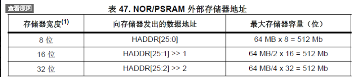 这里 HADDR 是内部 AHB 地址总线,其中 HADDR[25:0]来自外部存储器地址