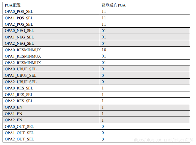 PGA的增益由三个OPA共同决定。这种模式下不支持7和14的增益。
