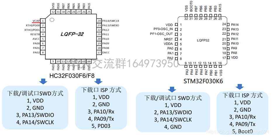 HC32F030在替换STM32F030的时候PCB中只需做小的更改(pin1电源)、软件容易移植、供货稳定、价格惊暴!!!