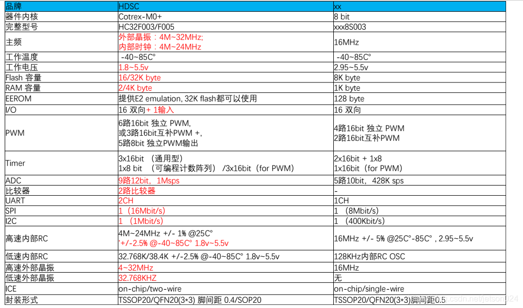 ☆ HC32F003/005替代XXX8S003–资源对照表