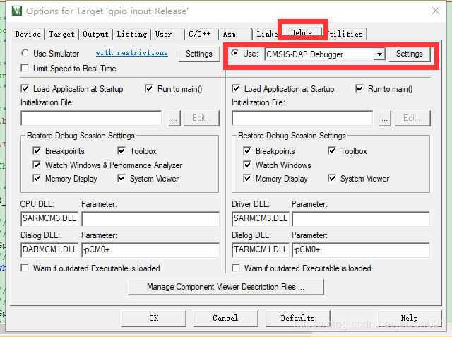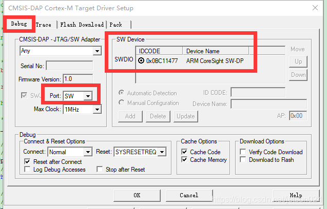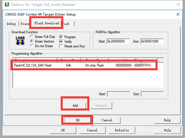 选中Debug项,在Use中选中CMSIS-CAP Debugger,点击Settings. 弹出的对话框中可以在Debug项Port:选SW,SW Device中可以看到SWDIO中会出现芯片的相应信息。 在此界面选中Flash Download项会进入到芯片的Flash文件设置,进入后可以看到相应芯片Flash型号,如果没有显示,或是显示错误可以点击Add时行添加。所有信息到正确后点击OK关闭设置。 点击下图所示Rebuild图标对工程进行编译。 编译完成如下图所示:
