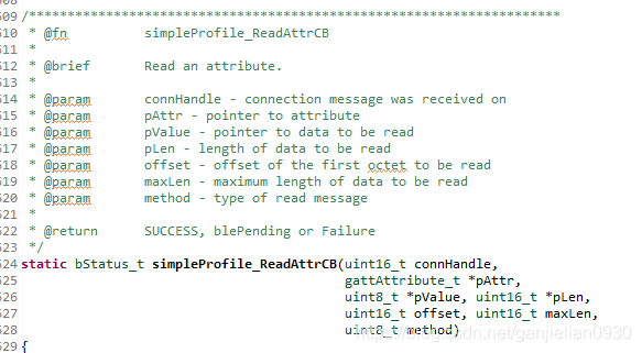 要千万记得,这两个程序,是运行在我们前面所说的窗口时间内的,所以这两个程序的主要内容,是把主机要读的内容传递出去,以及把主机要写的内容保存下来,最终再启动一个应用层的写回调(读回调没有,因为数据传递出去就行了;写回调,因为新的内容写进来,需要通过回调通知应用层)。很多人直接在这个子函数里写程序,直接导致BLE断线。这个情况就好像,我们坐火车一样,路过上饶,停靠5分钟,这个时候听到上饶**腿的叫卖, 你下火车买了个**腿,然后回火车上,火车开动了开吃,谁知道某人,买了**腿直接吃,吃完了才上火车,结果你吃**腿花了6分钟时间,火车开走了!这段程序的流程就类似这样,写了个数据进来,保存下来,通知应用层,然后完成余下的操作(收到了数据,要回一个回执给主机),本次数据交互结束。你在这里加程序,那等于是在上饶下火车吃**腿。