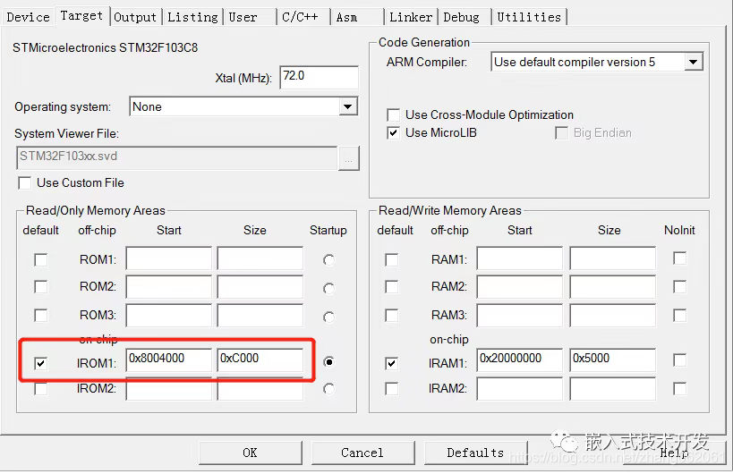 在应用程序中system_stm32f10x.c文件,找到: