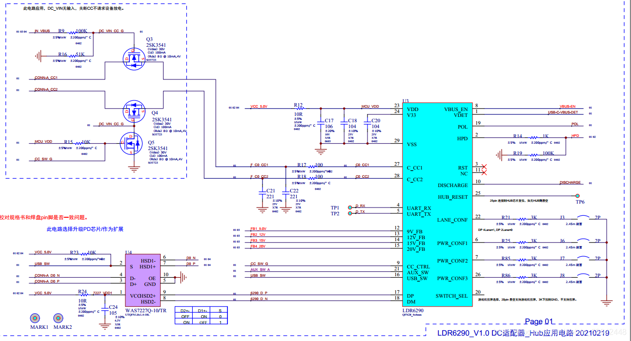 单USB Type-C接口桌面显示器专用解决方案,LDR6290部分电路如下: