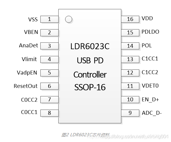 我们购买了亚马逊和淘宝上的多种边听边充转接器机进行拆解和学习后发现。里面都有一颗相同的USB PD控制芯片LDR6023C,通过咨询了深圳市乐得瑞科技有限公司,获得了这颗芯片的开发资料及原厂联系方式。可以看到这颗芯片是这样的: