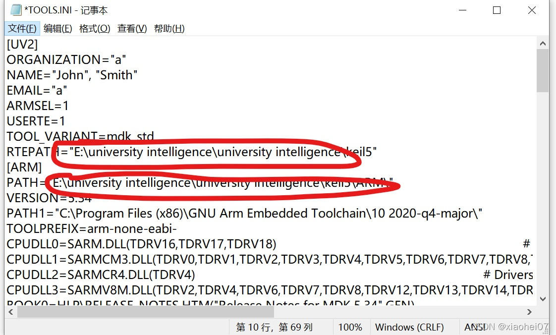 解决办法是在keil5根目录下找到TOOLS.INI,用记事本打开,将其中的RTEPATH和PATH后的内容修改为更改后的文件地址。