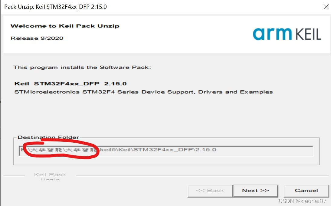 在最开始安装keil5时使用了中文路径,导致在安装需要的.pack文件时其默认使用了中文路径