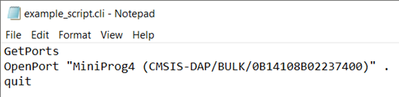 1.1 创建脚本文件本文档附有 PSoC™ 4 和 PSoC™ 3/5LP MCU 适用的.cli 格式脚本文件示例。该脚本可用于给示例应用编程hex文件((PSoC™ 4 MCU CY8CKIT-043 套件和PSoC™ 5LP MCU CY8CKIT-059 kit的 Blinky LED 应用)。