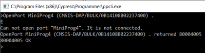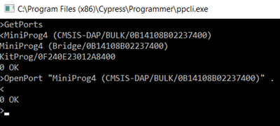 OpenPort KitProg/1A06163201324400 "C:\Program Files (x86)\Cypress\Programmer\"