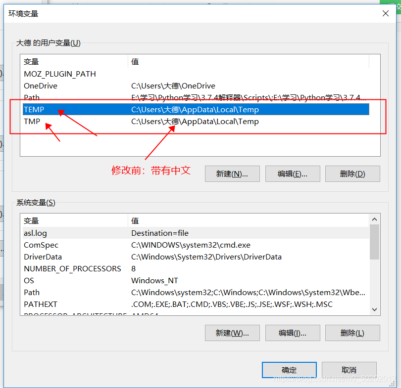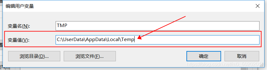 将原本的环境变量删除,替换为我们之前所创建文件夹的路径【 C:\UserData\AppData\Local\Temp 】 完成后如下图↓↓↓↓↓↓↓↓↓↓↓↓↓↓↓↓↓↓↓↓↓↓↓↓↓↓↓↓↓↓↓↓↓↓↓↓↓↓↓