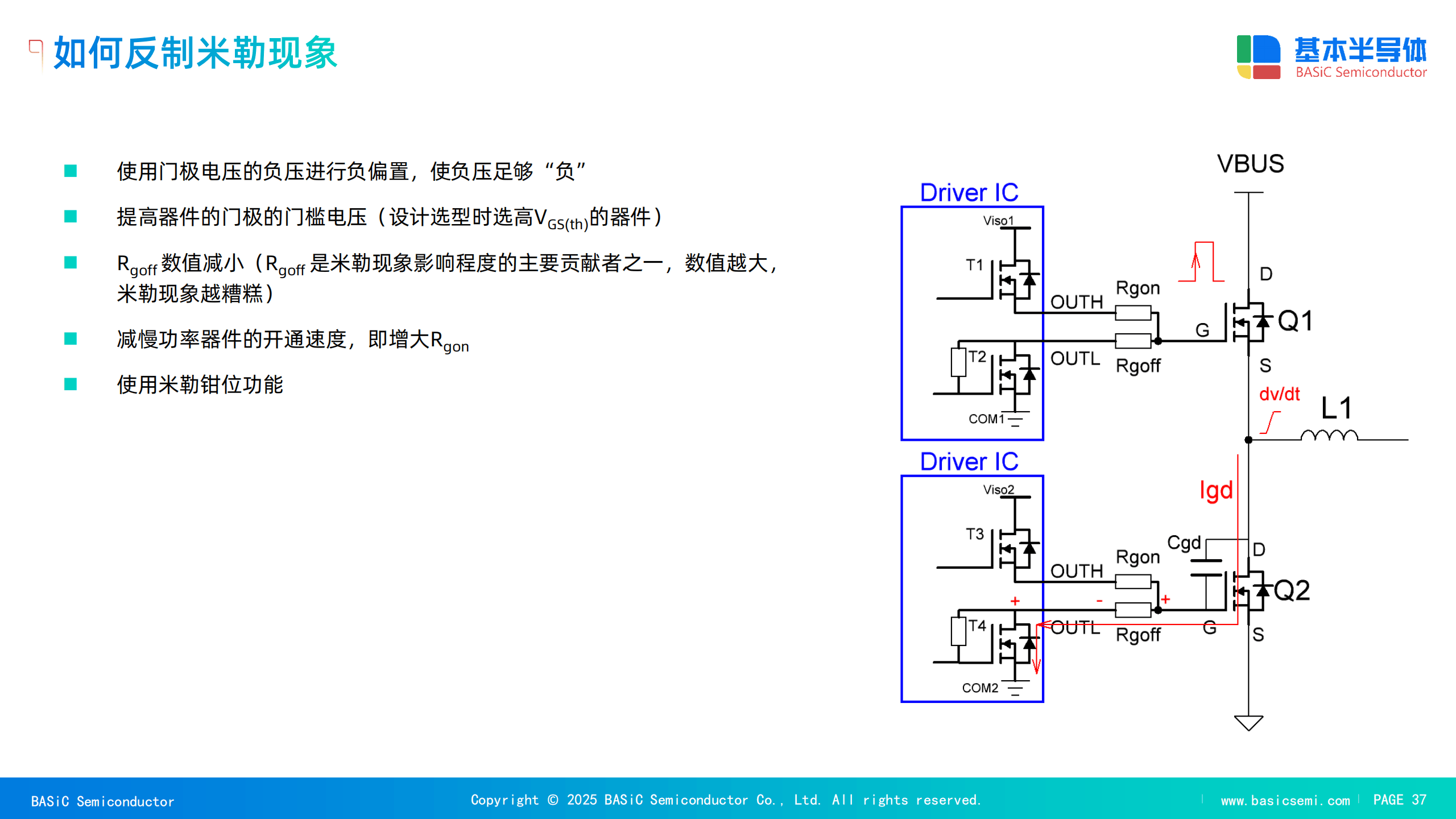 为有效应对米勒效应,基本半导体推出了配套的BTD5452R隔离型门极驱动芯片。该芯片的核心功能之一是集成了有源米勒钳位(Active Miller Clamp)功能 。