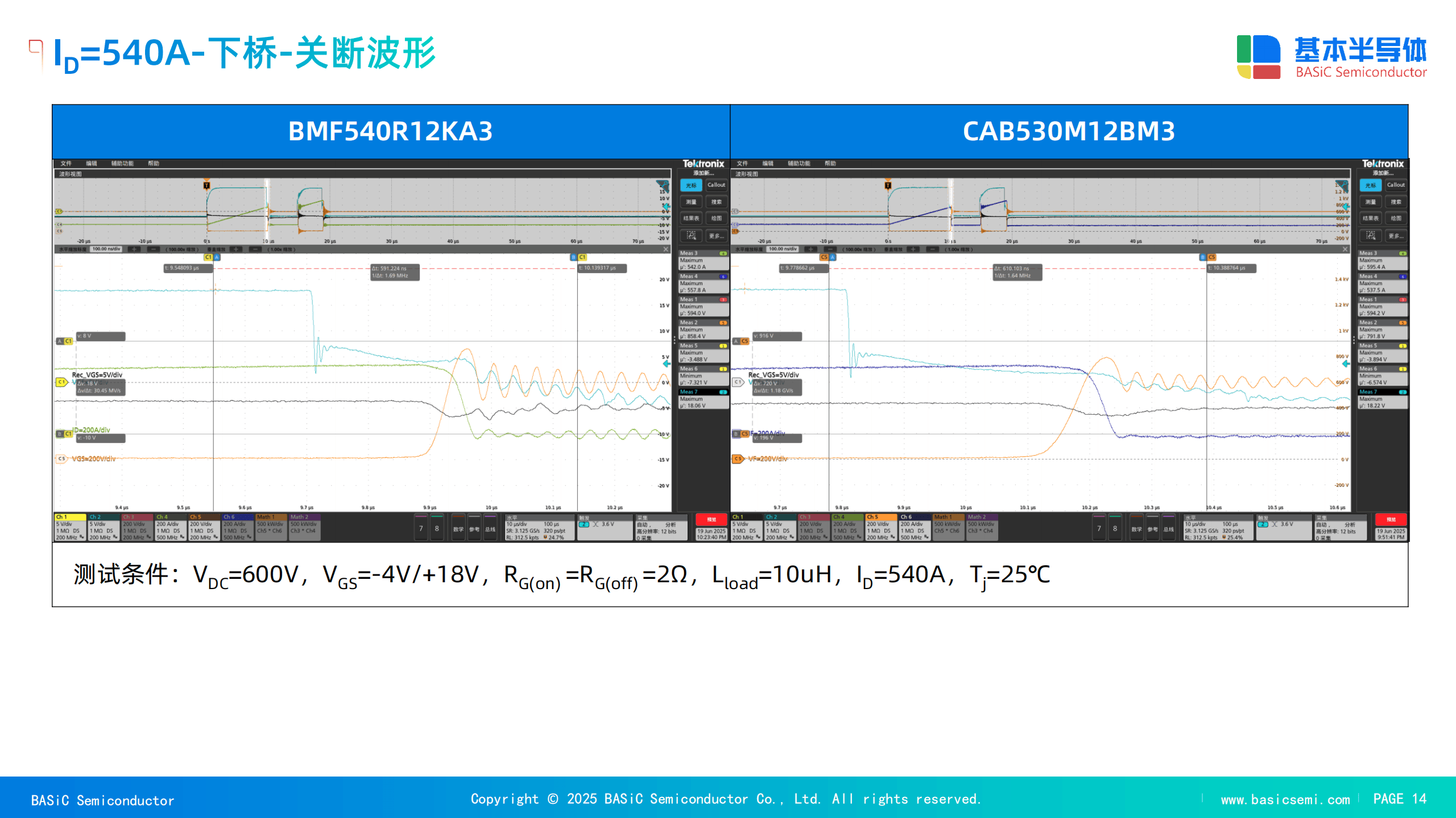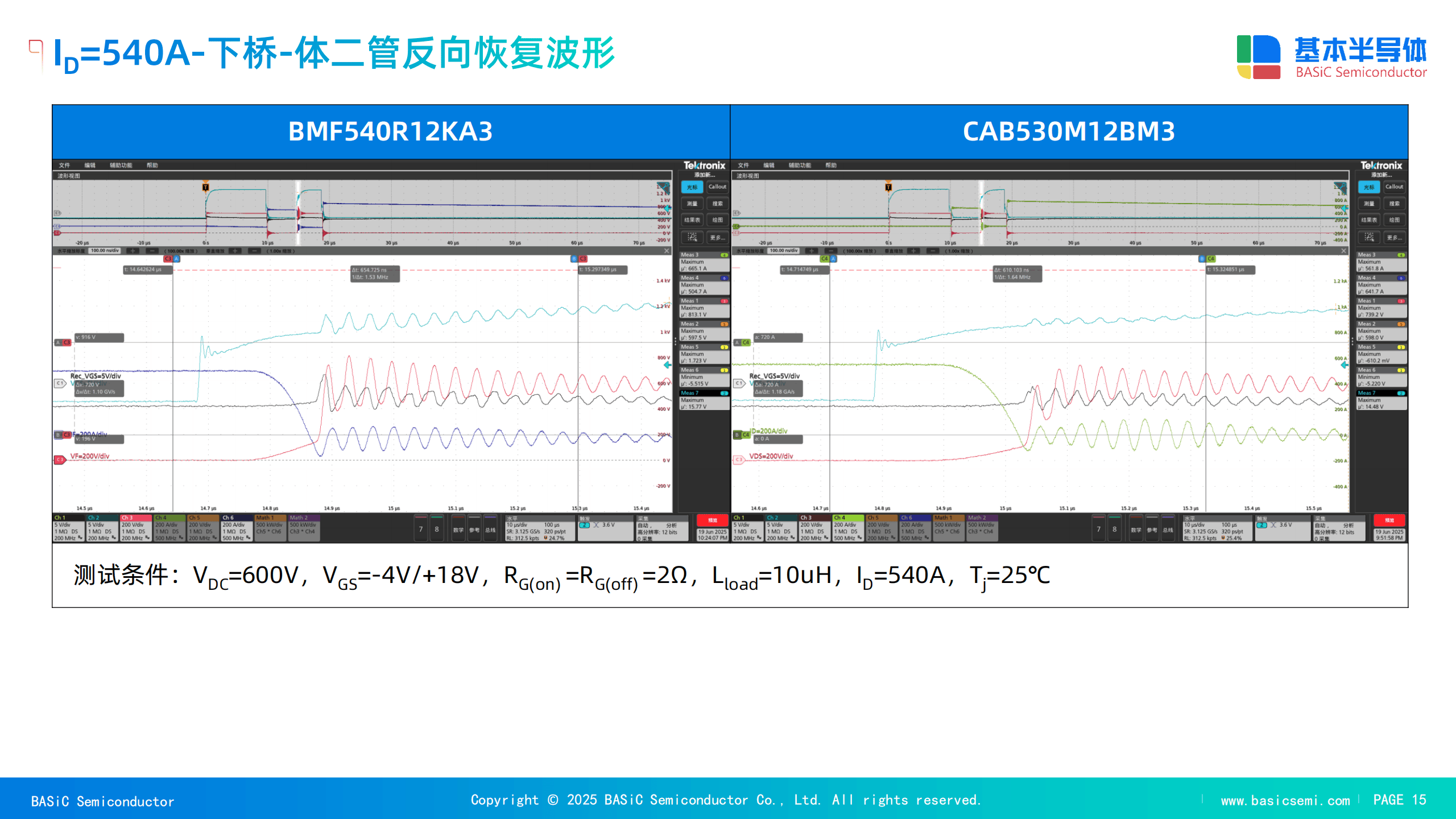 通过对BMF540R12KA3与竞品CAB530M12BM3(Cree)的双脉冲测试数据进行分析,可以清晰地看到基本半导体产品的竞争优势 。