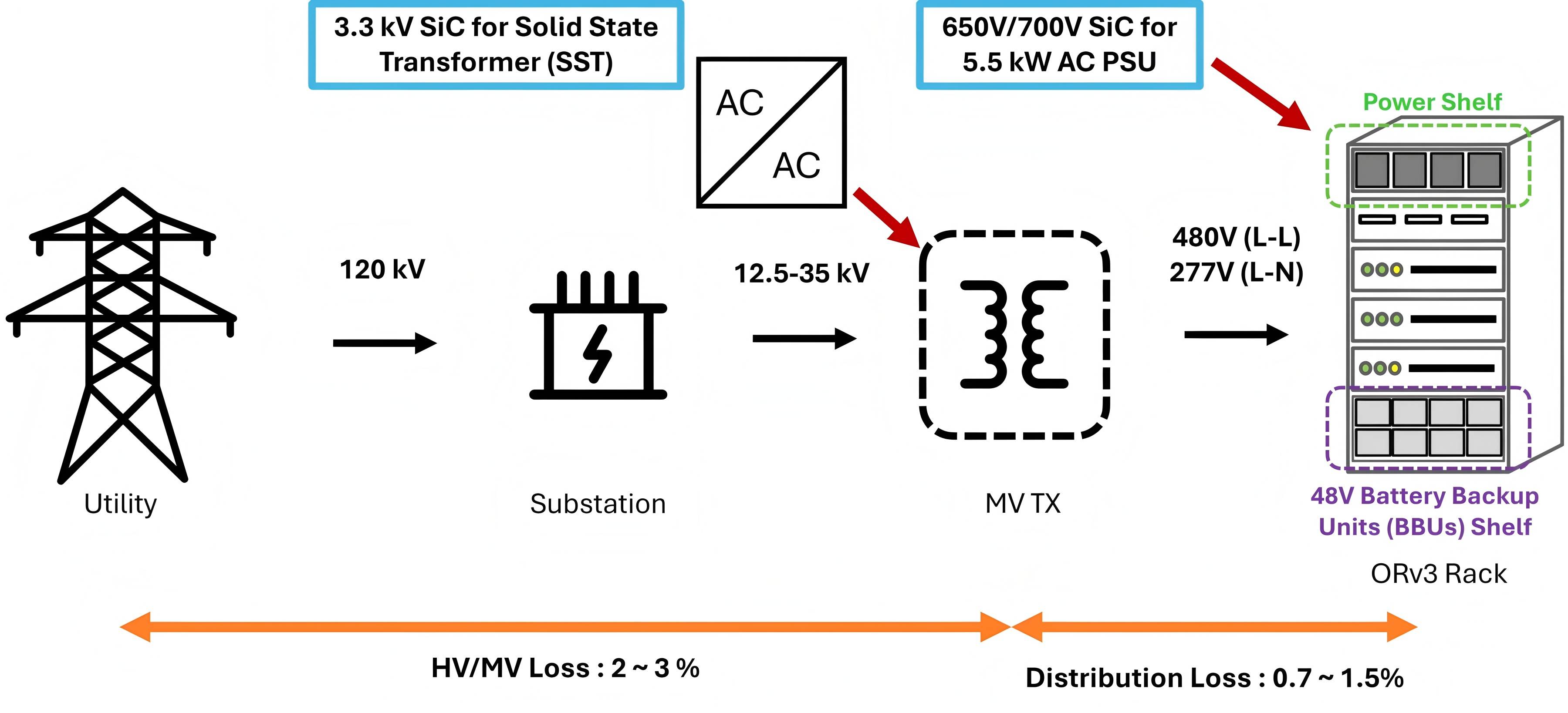 HVDC应用:在HVDC供电系统中,SiC模块作为核心功率转换器件,能够实现超过99%的转换效率,并且由于其优异的开关特性,能够实现单位功率因数(PF≈1)和抑制电网谐波污染(THD<5%),提供更纯净、稳定的直流电源 。在数据中心这种对效率和可靠性有极致要求的大规模系统中,SiC带来的哪怕是微小的效率提升,其累积的经济效益也极其可观,这使得SiC器件在数据中心供电中的应用是从“技术可行”到“经济最优”的必然选择。