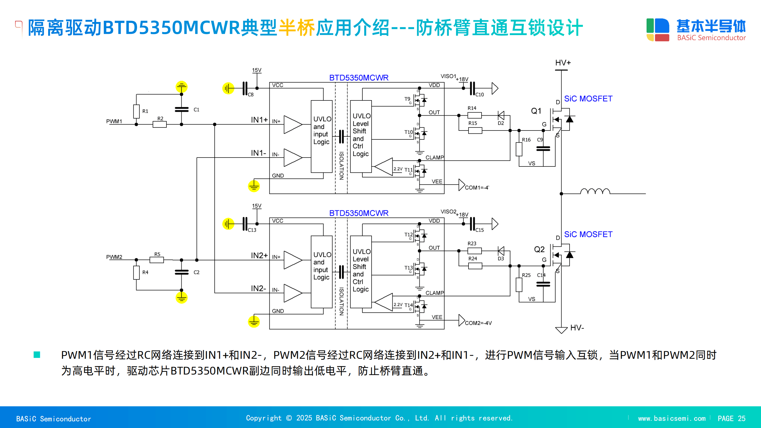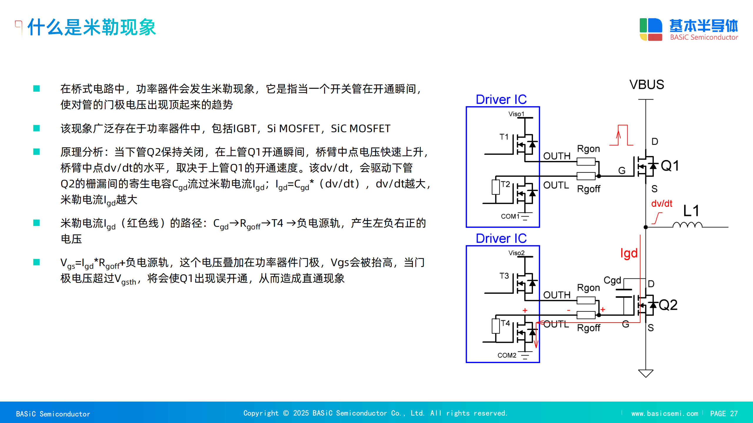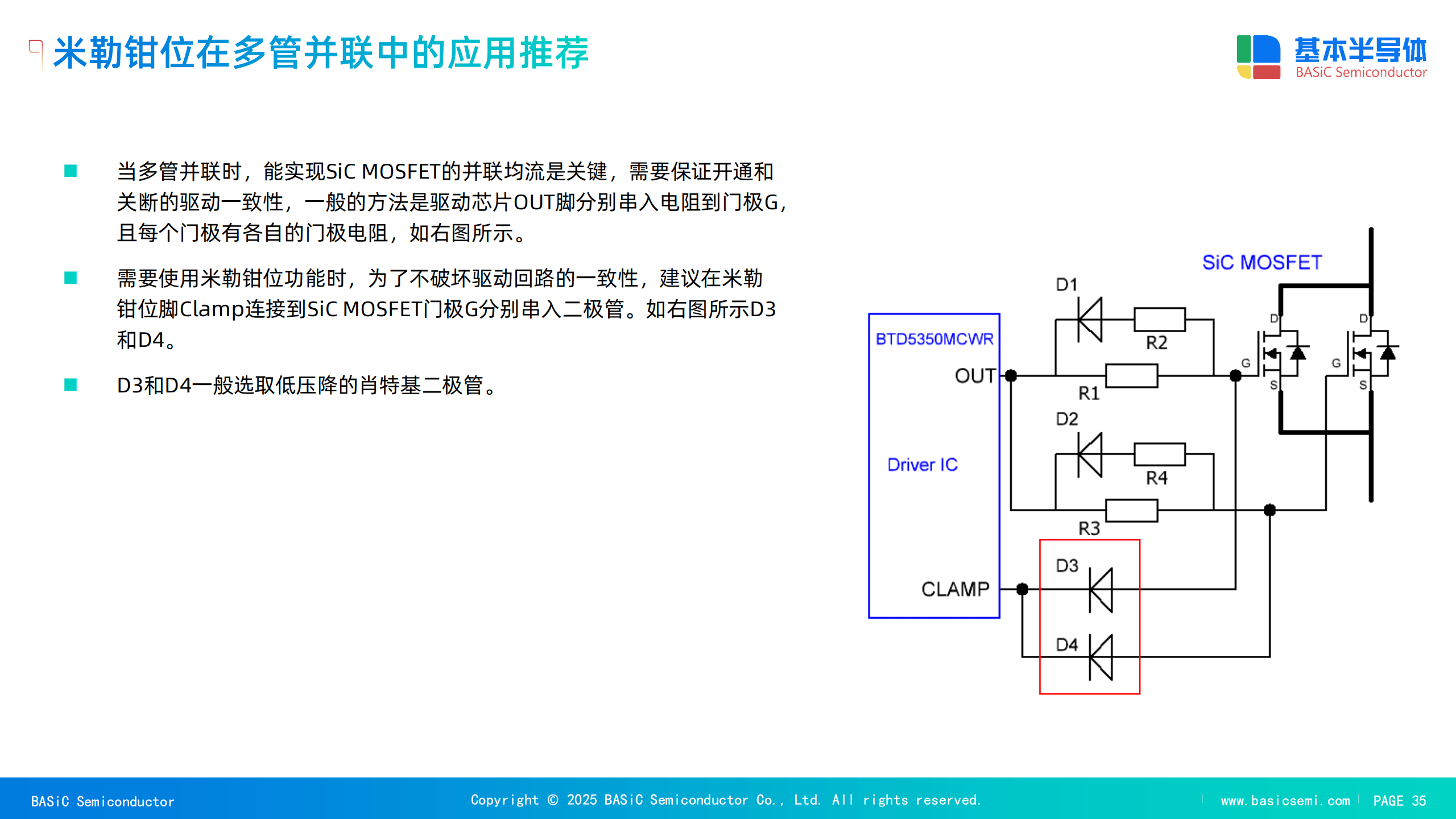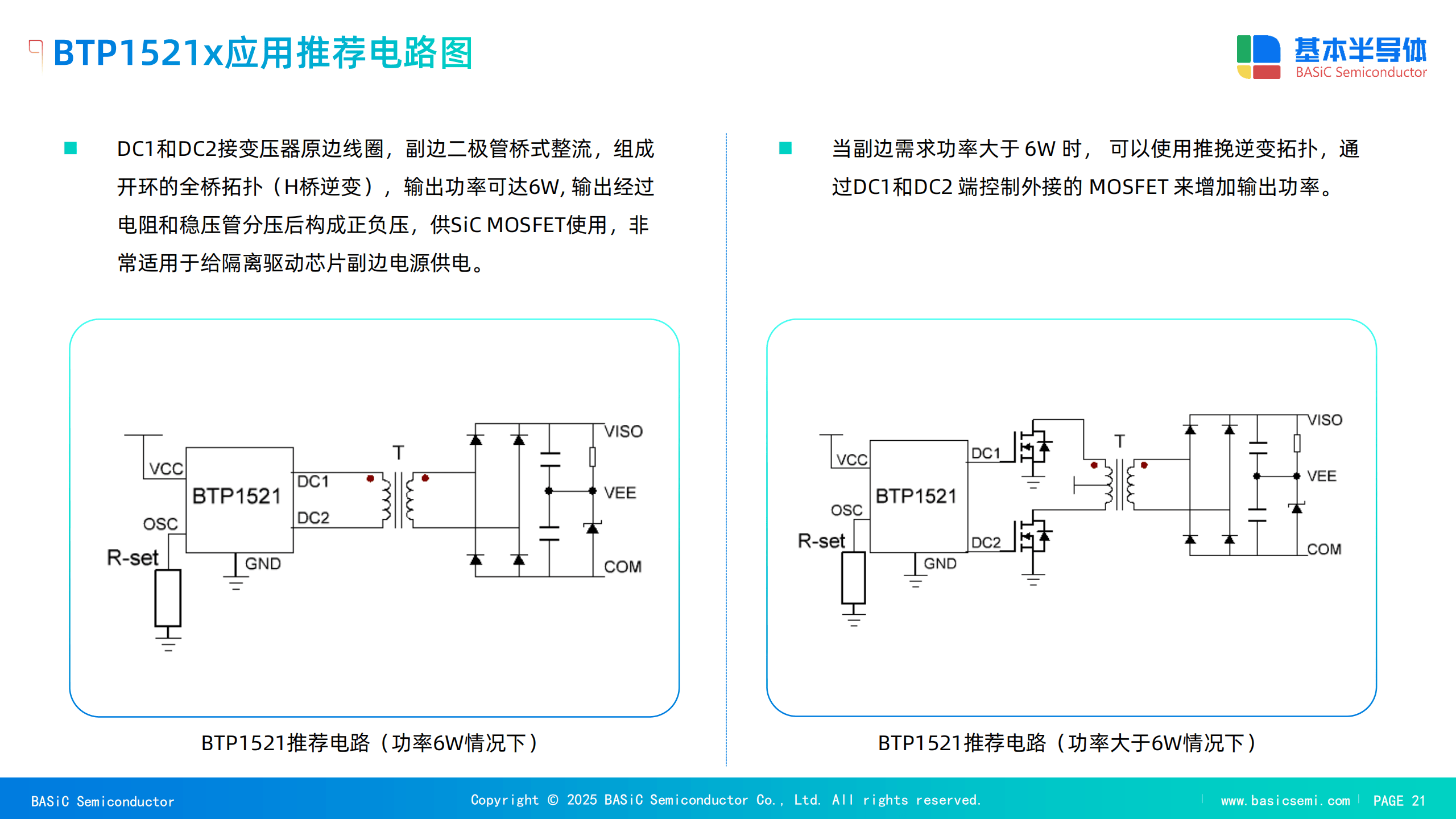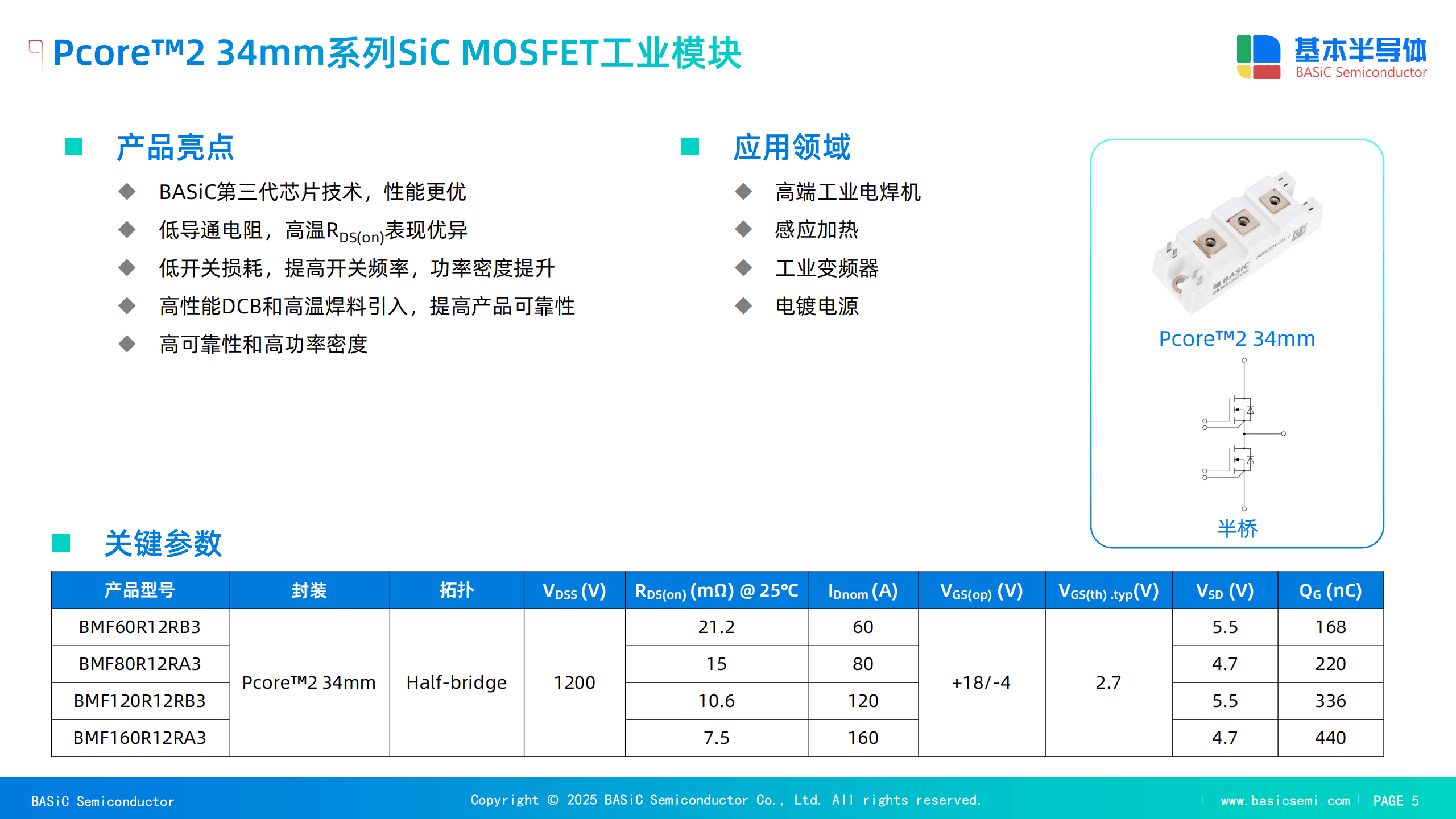 倾佳电子碳化硅(SiC)技术赋能下的工业逆变焊机:拓扑重构、效能飞跃及系统级设计深度分析 倾佳电子(Changer Tech)是一家专注于功率半导体和新能源汽车连接器的分销商。主要服务于中国工业电源、电力电子设备和新能源汽车产业链。倾佳电子聚焦于新能源、交通电动化和数字化转型三大方向,并提供包括IGBT、SiC MOSFET、GaN等功率半导体器件以及新能源汽车连接器。 倾佳电子杨茜致力于推动国产SiC碳化硅模块在电力电子应用中全面取代进口IGBT模块,助力电力电子行业自主可控和产业升级! 倾佳电子杨茜咬住SiC碳化硅MOSFET功率器件三个必然,勇立功率半导体器件变革潮头: 倾佳电子杨茜咬住SiC碳化硅MOSFET模块全面取代IGBT模块和IPM模块的必然趋势! 倾佳电子杨茜咬住SiC碳化硅MOSFET单管全面取代IGBT单管和大于650V的高压硅MOSFET的必然趋势! 倾佳电子杨茜咬住650V SiC碳化硅MOSFET单管全面取代SJ超结MOSFET和高压GaN 器件的必然趋势! I. 执行摘要与 SiC 技术战略定位 1.1 工业逆变焊机技术演进与 SiC 带来的效率革命 工业逆变焊机作为重负载、高占空比的典型工业电源设备,其设计核心始终围绕效率、功率密度和长期可靠性展开。传统上,IGBT(绝缘栅双极晶体管)技术是主功率级的主流选择,但由于 IGBT 存在固有的高开关损耗,这限制了逆变焊机的开关频率无法显著提升,通常被限制在 20kHz 左右。这种频率限制直接导致系统中的磁性元件和滤波元件体积庞大,难以满足小型化需求,并且能效标准通常难以突破国家二级能耗标准 。 碳化硅(SiC)MOSFET 的引入,标志着逆变焊机电源技术进入了一个全新的发展阶段。SiC 材料的物理特性赋予了器件极低的导通电阻和开关损耗,彻底打破了 IGBT 时代的频率瓶颈。通过采用 SiC MOSFET,逆变焊机能够实现 70kHz 甚至更高的开关频率,从而实现了系统的小型化、轻量化和能效等级的显著提升 。 1.2 核心发现:SiC 相较于 IGBT 的量化优势及经济效益 SiC 技术带来的效能提升是可量化且具有直接经济效益的。NBC-500SiC 焊机的实测数据清楚地展示了这一技术飞跃:采用 SiC MOSFET 后,焊机的逆变频率从传统 IGBT 设备的 20kHz 提升至 70kHz,实现了 3.5 倍的频率提升。伴随而来的,是系统整体能效从国标二级能耗的 86.0% 跃升至 90.47%,轻松达到一级能耗标准。同时,负载状态下的功率因数也由 0.89 提升至 0.938 。 这种效率的提升转化为了显著的能源节约。对于一台 500A 的焊机,相对于二级能耗的型号,SiC 版本实现了约 9.8% 的节电比例(输入功率从 26.13kVA 降至 23.57kVA,节电 2.56kVA)。根据工业应用场景的经济评估,通过节省的电费,一台 SiC 焊机的额外成本可以在 60 至 110 天内收回。这种极短的投资回报周期是推动工业用户大规模采用 SiC 解决方案的关键商业驱动力,预示着 SiC 在该领域的普及速度将远超行业预期。此外,SiC 器件在 1200V 平台上的低导通电阻温升倍率(约 1.3 倍)和极低的体二极管反向恢复电荷(Qrr 约为0.28nC),为高可靠性、高频率运行奠定了坚实的物理基础 。 II. 逆变焊机电源拓扑架构与 SiC 演进路径 2.1 IGBT 时代的主流拓扑及性能瓶颈 逆变焊机电源设计必须应对高直流母线电压( typically 540V 至 800V)和高输出电流(250A 至 500A 以上)的严苛工况 。主功率级通常采用半桥或全桥逆变拓扑,这些拓扑通过高频开关元件将直流母线电压转化为高频交流方波,再通过高频变压器进行降压和隔离,最后通过二次侧整流输出大电流 。 在 IGBT 时代,开关损耗随频率呈线性甚至指数级增长的特性,使得开关频率被限制在 20kHz 左右。这种低频运行的代价是必须使用笨重的大型变压器和滤波元件,从而限制了焊机整体的功率密度和便携性。此外,IGBT 的较高导通损耗也是能效难以提升的关键因素 。 Table 1: SiC 与 IGBT 逆变焊机性能量化对比 (基于 500A 焊机实测) 参数/指标SiC MOSFET ( NBC-500SiC)IGBT (国标 2 级 NBC-500)性能提升 (SiC/IGBT)引用典型逆变频率70kHz20kHz3.5X 实测效率90.47% (1 级能效)86.0% (2 级能效)4.47% 绝对值 负载功率因数0.9380.895.4% 相对提升 输入功率23.57kVA26.13kVA9.8% 节电 经济回收周期∼60−110 天不适用显著缩短 TCO 2.2 SiC MOSFET 赋能的高频拓扑架构:设计要求与实现优势 SiC MOSFET 的应用使得高频逆变焊机成为现实。通过将开关频率提升至 70kHz,系统的体积和重量可以显著降低,实现了产品形态的创新,即从大型固定设备向高功率密度的小型化或模块化设备转变 。这种架构重构不仅是简单的性能替换,而是对整个电源设计的优化。 在拓扑选择上,鉴于工业焊机通常采用 380V AC 输入,直流母线电压稳定在 540V 左右,采用 1200V 耐压等级的 SiC MOSFET 的全桥或半桥拓扑是行业主流。对于大电流输出(500A 以上)的场景,为确保卓越的并联均流效果、简化系统设计和优化热管理,强烈推荐使用 SiC 功率模块方案(如 BMF 系列)。 在器件选型方面,针对 350A 到 500A 的输出电流,设计者可以选择 1200V 的 SiC MOSFET 分立器件(如 B2M040120Z 或 B2M030120Z,通常需要 8 颗并联以满足电流需求)或 SiC 模块(如 BMF80R12RA3 或 BMF160R12RA3)。 2.3 辅助电源架构分析:为 SiC 驱动供电的隔离 DCDC 方案 SiC MOSFET 对其门极驱动电压要求非常严格,通常需要特定的正负偏压(如 +18V/-4V 或 +18V/-5V)以保证最佳的导通性能和可靠的关断(抑制误导通)。因此,门极驱动子系统需要一个高可靠、高隔离度的辅助电源。 推荐的辅助电源架构是基于