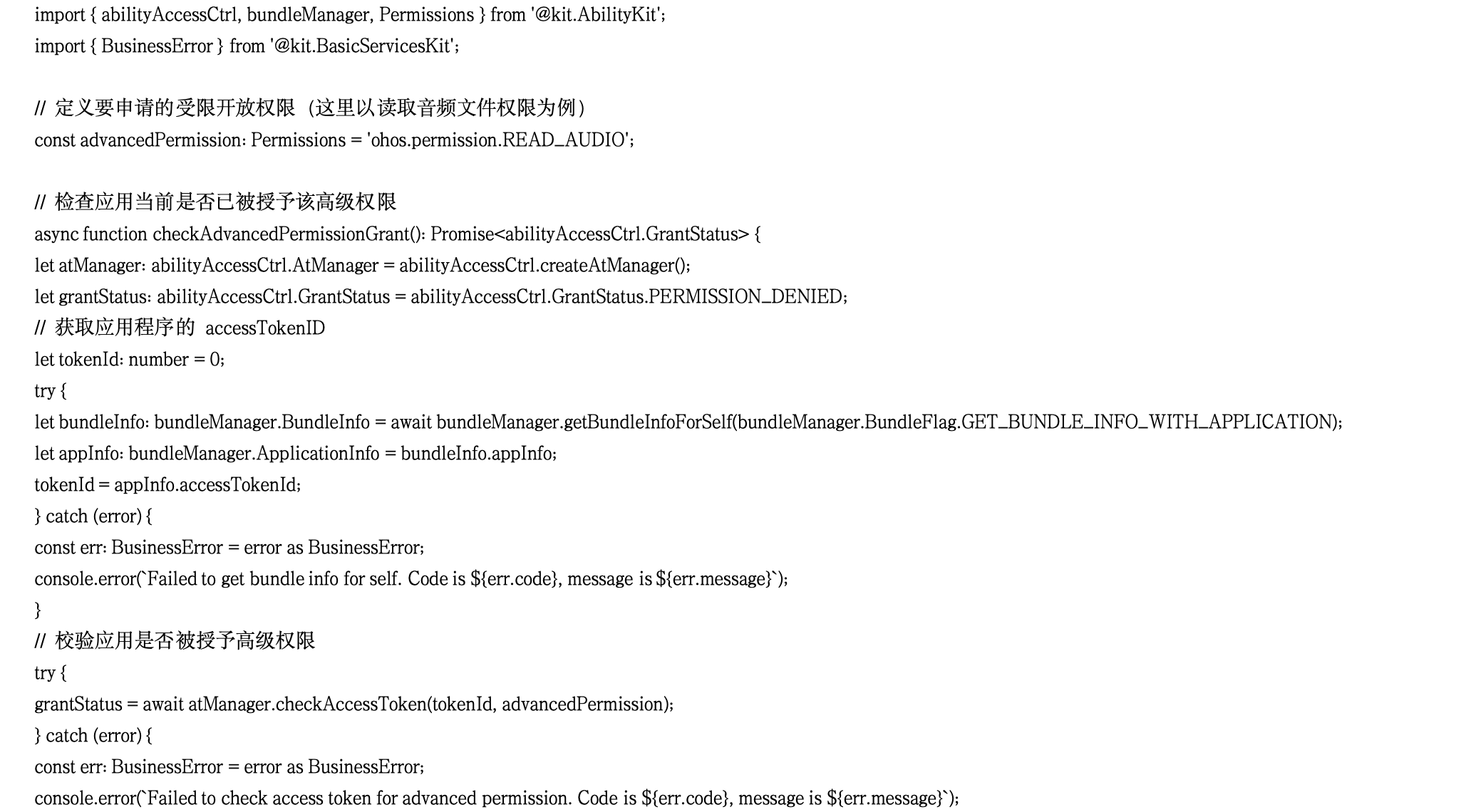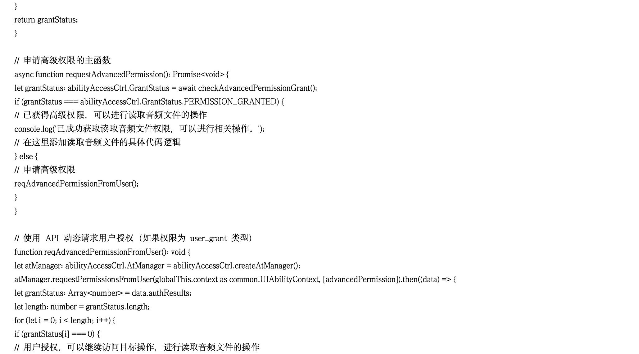 本文旨在深入探讨华为鸿蒙HarmonyOS NEXT系统(截至目前 API12)在开发多语言电商平台方面的技术细节,基于实际开发实践进行总结。主要作为技术分享与交流载体,难免错漏,欢迎各位同仁提出宝贵意见和问题,以便共同进步。本文为原创内容,任何形式的转载必须注明出处及原作者。 在鸿蒙 NEXT 系统的权限管理体系中,除了常规的系统授权和用户授权外,受限开放权限与 ACL(访问控制列表)申请为开发者在特定场景下提供了更高级别的权限获取途径。合理运用这两种方式,能够满足一些特殊功能需求,同时确保系统的安全性和稳定性。今天,我们就深入探究这两个重要的权限申请机制。 一、受限开放权限:特殊场景下的权限获取 (一)受限开放权限的概念 受限开放权限是指那些通常情况下不向第三方应用开放,但在某些特殊场景下,经过严格审核后可允许应用申请的权限。这些权限涉及到系统的一些敏感功能或用户的重要数据,因此需要谨慎管理,以防止权限滥用。可以将其想象为系统中的“高级机密区域”,只有满足特定条件的应用才能获得进入的许可。 (二)常见受限开放权限及特殊场景 1. 读取音频文件权限(ohos.permission.READ_AUDIO) · 特殊场景:当应用需要克隆、备份或同步音频类文件时,可能需要申请此权限。例如,一款音乐编辑应用可能需要读取用户音频文件进行编辑和处理,或者音乐播放应用需要读取本地音频文件进行播放列表的管理。 · 替代方案:在其他非特殊场景下,应优先考虑使用“AudioPicker”来访问用户音频文件。这种方式可以在不申请受限权限的情况下,实现对音频文件的访问,降低了权限获取的难度和风险。 2. 修改音频文件权限(ohos.permission.WRITE_AUDIO) · 特殊场景:与读取音频文件权限类似,当应用涉及音频文件的克隆、备份或同步操作,且需要对音频文件进行修改时,可申请此权限。比如,音频格式转换应用需要修改音频文件的编码格式。 · 替代方案:使用“AudioPicker”保存用户音频文件,避免直接申请修改权限,减少对系统的潜在风险。 3. 读取剪贴板权限(ohos.permission.READ_PASTEBOARD) · 特殊场景:在 2in1 设备上的应用通常可以申请此权限,此外,银行类应用在需要读取剪贴板中的银**号自动生成卡片、应用需要读取剪贴板中特定格式口令自动打开应用内对应页面以及文档编辑类应用等场景下,也可申请。例如,银行应用为了方便用户快速输入银**号,可读取剪贴板中的卡号信息。 · 替代方案:对于大多数应用,建议使用“粘贴控件”来读取剪贴板数据,这种方式无需申请受限权限,同时提供了便捷的用户体验。 (三) 受限开放权限申请流程 1. 审核前置准备 开发者在申请受限开放权限之前,必须仔细审视应用是否确实符合相关的特殊场景需求。这需要对应用的功能和业务逻辑进行深入分析,确保申请的必要性和合理性。同时,应优先探索是否存在其他替代方案,如使用系统提供的相关组件或控件来实现相同功能,以避免不必要的权限申请。 2. AGC 申请与审核 · 提交申请材料:若确定需要申请受限开放权限,开发者需提供详细的申请材料到应用市场(AppGallery Connect,简称为 AGC)。这些材料包括应用的使用场景说明、功能描述、申请权限的原因等,务必确保信息准确、完整且真实。例如,若申请读取音频文件权限,需详细说明在音频克隆、备份或同步过程中的具体操作流程和用户价值。 · 审核过程与注意事项:AGC 将根据提交的材料对应用的使用场景进行严格审核。审核过程中,会重点评估申请权限是否与应用的实际功能紧密相关,是否符合受限开放权限的使用规范。开发者应密切关注审核结果,如有需要,及时补充或修正申请材料。 (四)受限开放权限申请场景与替代方案表格展示 二、ACL 申请:突破权限等级限制 (一)ACL 申请的作用 ACL 申请为低等级应用提供了一种获取高级别权限的特殊途径。在鸿蒙 NEXT 系统中,权限等级与应用的 APL(Ability Privilege Level)等级密切相关,原则上低 APL 等级的应用无法申请更高等级的权限。然而,通过 ACL 申请机制,在满足特定条件下,应用可以跨越权限等级限制,访问到更高级别的系统资源。这就像是为有特殊需求的应用搭建了一座临时的“权限桥梁”,使其能够在安全可控的前提下获取所需权限。 (二)ACL 申请流程 1. AGC 侧申请 Profile 文件 · 重要性与用途:Profile 文件在 ACL 申请过程中起着关键作用,它用于后续的应用签名信息配置。开发者必须在 AGC 侧申请 Profile 文件时,明确申请使用相应的受限权限。这一步骤就像是为应用获取“通行证”的申请过程,只有在申请中注明了所需的权限,后续的操作才能顺利进行。 · 申请步骤与注意事项:在申请 Profile 文件时,开发者需按照 AGC 的要求填写准确的应用信息和权限使用场景描述。确保所提供的信息与实际应用功能和权限需求相符,否则可能导致申请被驳回。例如,若应用需要通过 ACL 申请访问系统硬件信息的权限,在申请 Profile 文件时应详细说明应用如何使用该硬件信息以及对用户的价值。 2. 代码工程中声明权限 · 配置文件声明:在 AGC 侧完成 Profile 文件申请后,开发者需要在代码工程的配置文件中声明所需权限。与普通权限声明类似,在“module.json5”配置文件的“requestPermissions”标签中进行声明。例如: 其中,“name”为要申请的高级权限名称,“reason”需详细说明申请该权限的原因,