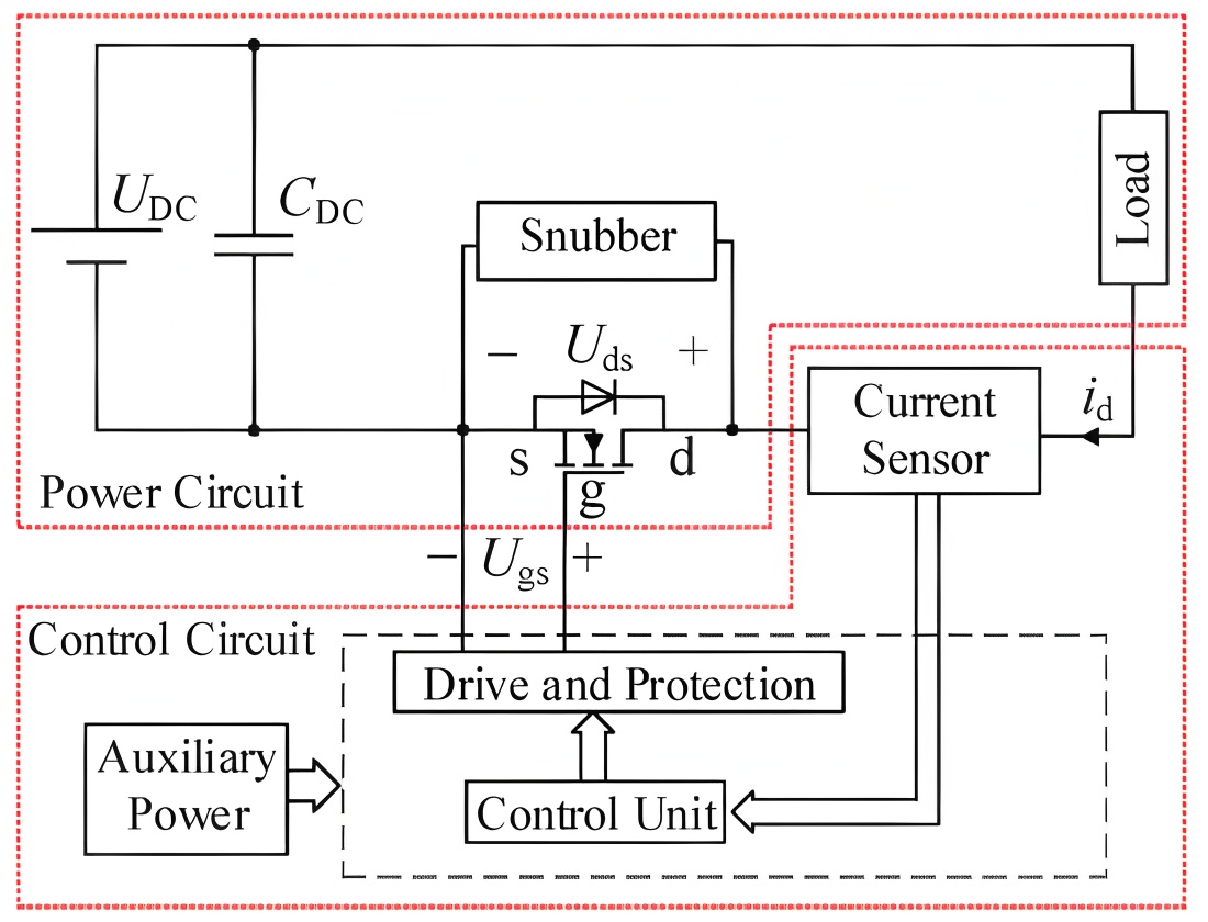 SSCB的功能要求它必须能承受短路电流,直到检测电路响应并安全关断。这就产生了一个矛盾:开关必须极快地关断,但又不能太快,否则过高的 $di/dt$ 会在系统杂散电感上产生破坏性的电压尖峰。