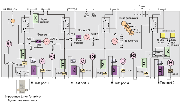 向量网络分析仪可能需要一个用于在线作为阻抗调谐器的公母端电可调模块。这是一项添加到用于校准 s 参数的电可调模块的功能。这取决于所使用的频率模型。请参见下面来自吉科斯 4 口 PNA-X 系列的图标。
