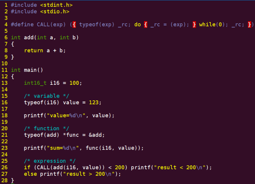 主要用来取得函数的类型,并定义函数指针使用,图中所示的指针func就是取着函数add类型定义的。 c. 取得表达式类型做处理。