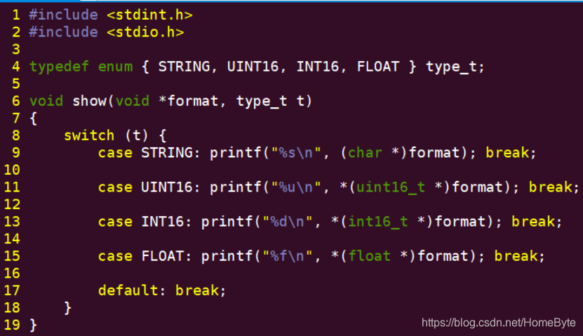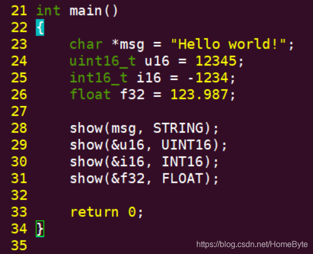 所谓通用类型指针,其实就是void *;该指针可以用来转换不同类型参数指针变量,如下例子(main_3.c),我们定义一个用于输出任意类型变量内容的函数,函数要求传入参数时指定该参数的类型(比如uint16_t,string等)来指示输出:   函数将void *类型格式化为想要类型的指针,然后取值输出,调用方式:   编译输出:   b. 代理传参调用。