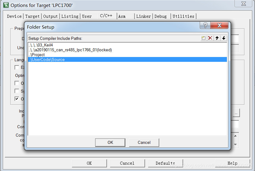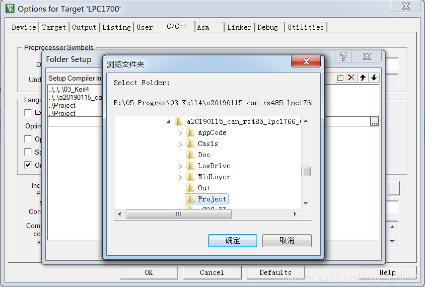 因此可以判定,当前路径不是main.c文件所在的位置。 假设当前路径时LPC1700.uvproj文件所在位置,即E:\05_Program\03_Keil4\a20190114_can_rs485_lpc1766_01(locked)\Project