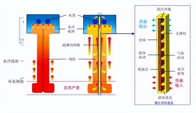 “类似直线电机这种需要大推力的场景,一般发热问题都会比较严重,比如磁悬浮列车加速度冲起来的时候,里面的线圈发热是致命的,我们也可以针对性地设计热管理方案。还有一些港口的龙门架啊,集装箱的搬运设备等等,都可以用上我们的相变器件。” 直线电机热管理方案:畅能达采用“千百十工程”国家级培养对象汤勇教授的超薄均热板技术,设计出了直线电机热管理系统。 通过获取直线电机的尺寸和工作情况,设计制造一种同直线电机相互匹配的 U 形或 L 形的相变超薄均热板,利用超薄均热板内部形成的气液相变循环,将绕组组件在工作时产生的欧姆热从绕组组件均匀传递至液冷板中带走。